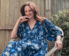 Crafted from a gorgeous blue floral viscose with lots of drape;