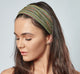 One size. Circumference of the headband is 20" (50.8cm) and it will comfortably stretch to around 23-24" (58 - 61cm) Depth of each band at its widest part is approx. 6.5” - 7.5” (16.5cm - 19cm)