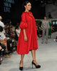 Sample Dress | Ochre Yellow Harriette Needlecord Fluted Sleeve Midi Dress with Detachable Bow-Tie