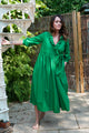 Sample Dress | Valentina Silky Satin Green Floral Puff Sleeve Dress | Size UK 10-12