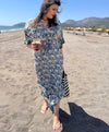 Feel light and luxurious in our Siobhan caftan, a silky-smooth piece that flatters your figure with a drawstring waist. The elegant butterfly sleeves and side slits add movement and grace, while the pockets offer convenience and comfort. The caftan also features a beautiful border print along the hem and sleeves.